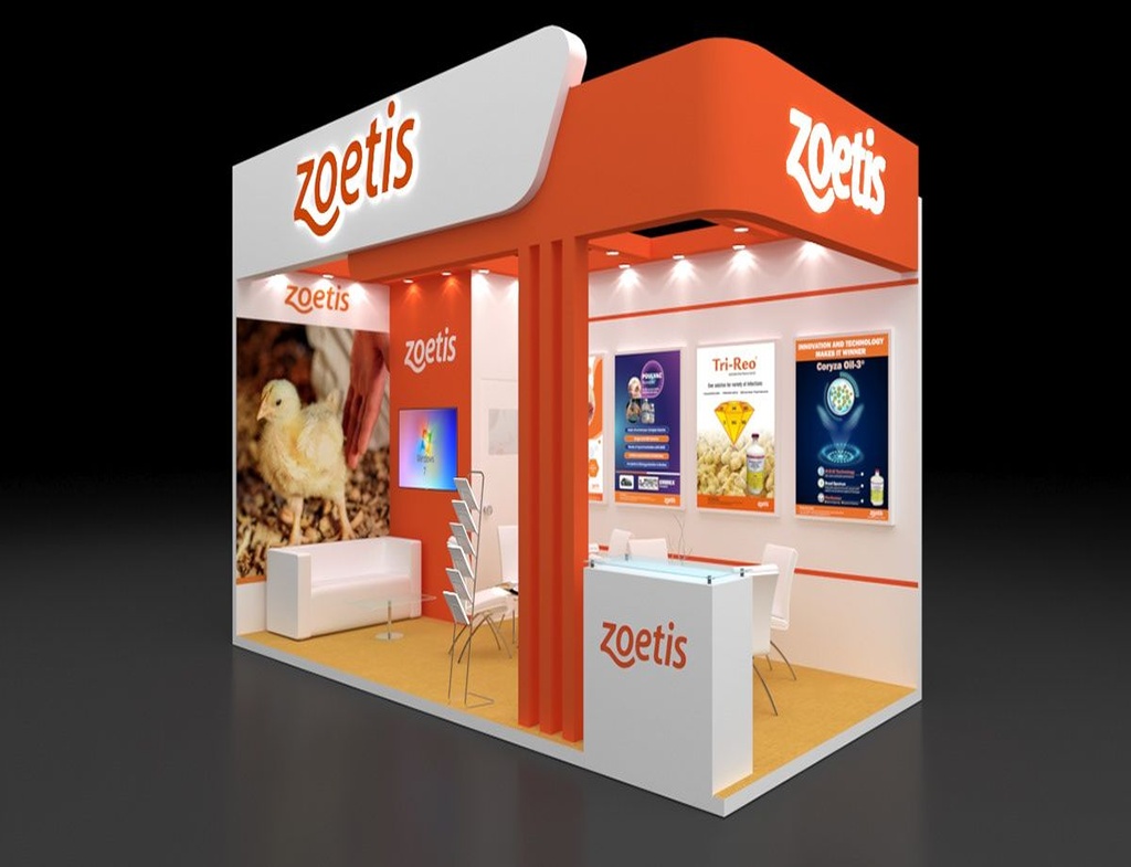 Recently created a custom pharma booth design for Zoetis with bright acrylic panels and product displays fully fabricated in-house.